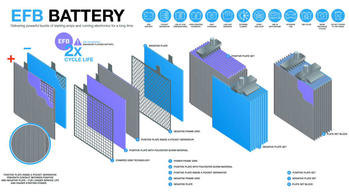Ắc quy EFB là gì? Công nghệ ắc quy dành cho xe Start-Stop