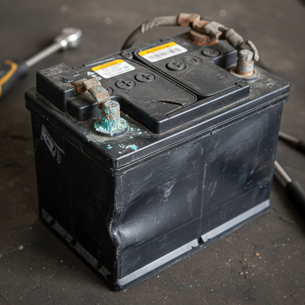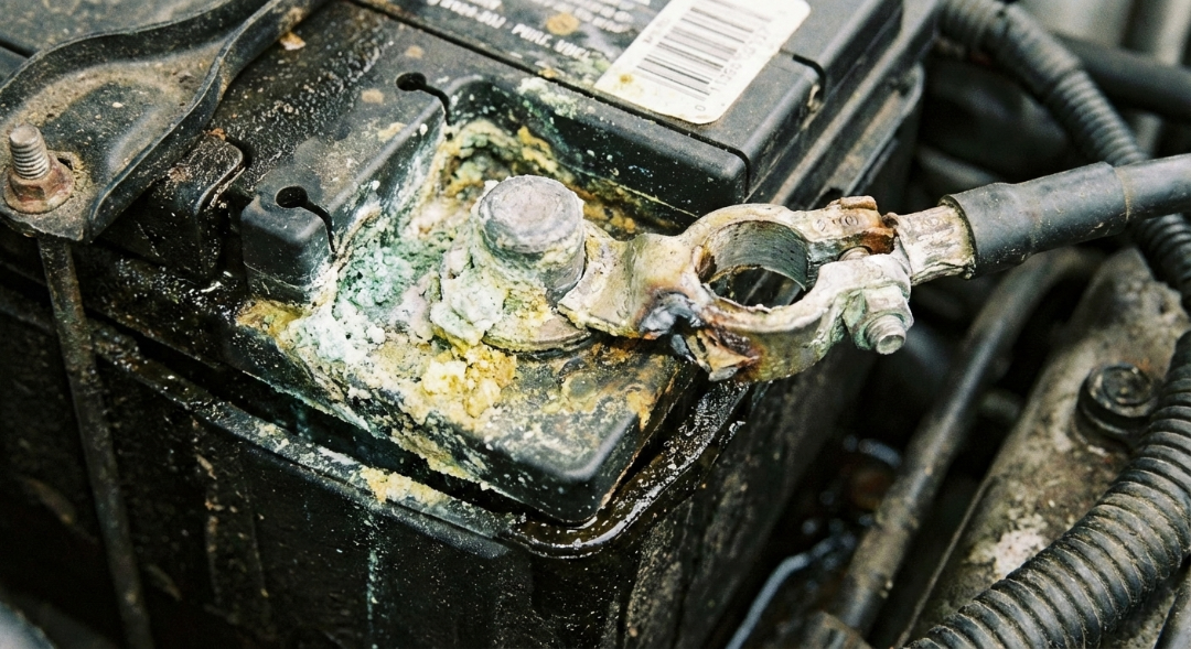 Hiện tượng oxy hóa (Muối trắng): Trong quá trình vận hành, hơi axit thoát ra từ các kẽ hở giữa cọc chì và vỏ nhựa sẽ phản ứng với kim loại ở đầu kẹp. Kết quả là tạo ra một lớp bột màu trắng hoặc xanh (axit sunfuric bám cặn). Lớp bột này có điện trở rất cao, ngăn cản dòng điện cường độ lớn đi qua để làm quay motor đề.